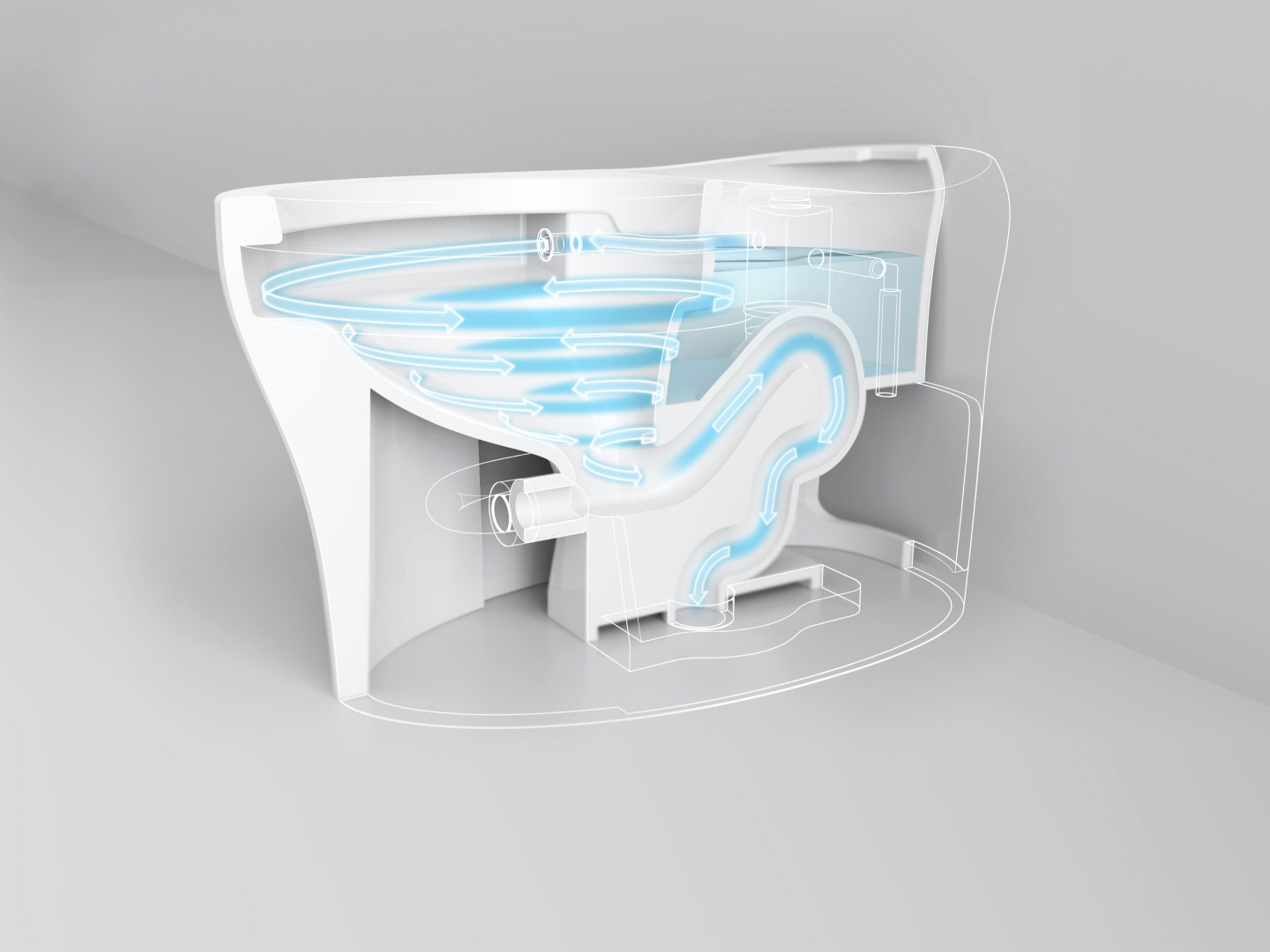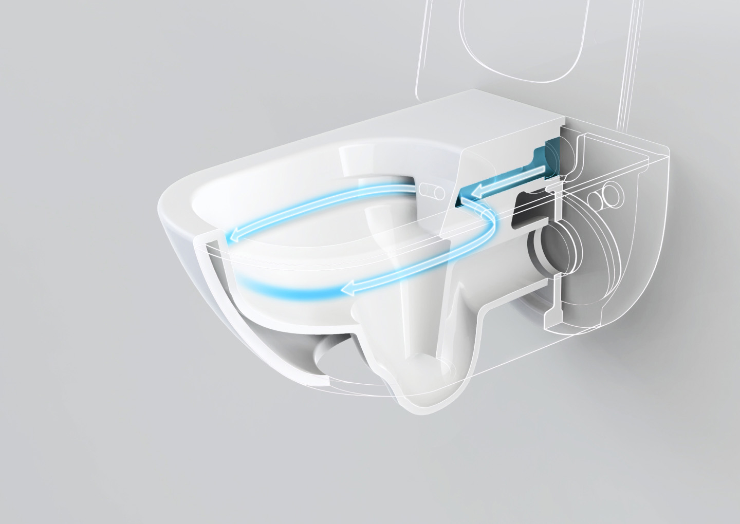 The new generation of siphonic flushing technology ensures there are no blind spots